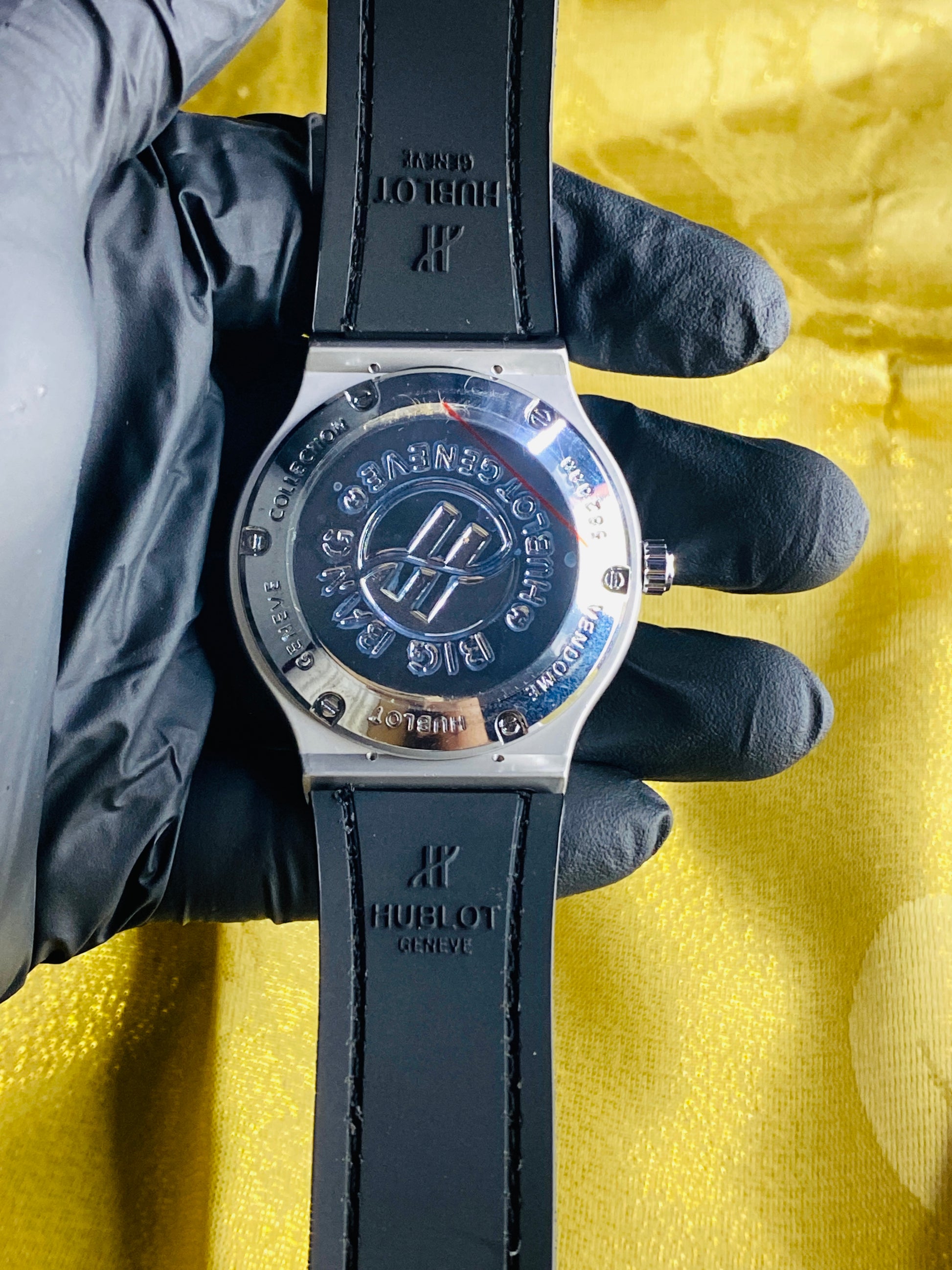Markings: “HUBLOT GENEVE” embossed on the strap and engraved on the clasp.